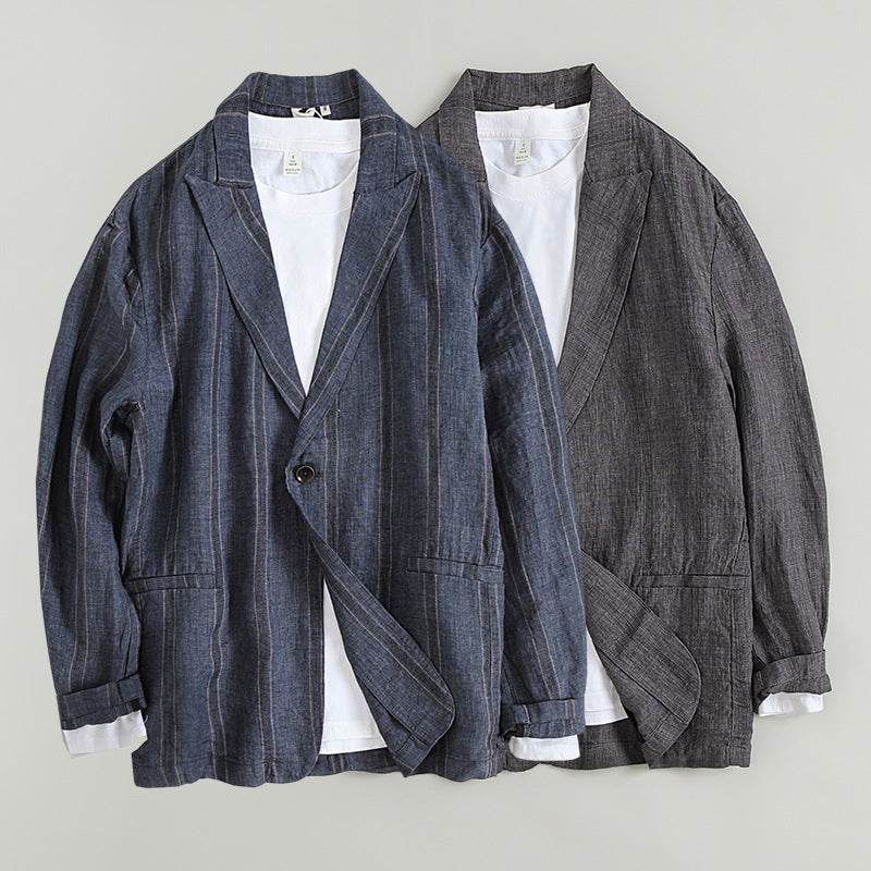 100% Linen Striped Suit Jacket, Vintage Chinese Casual Cotton Linen Suit Jacket
