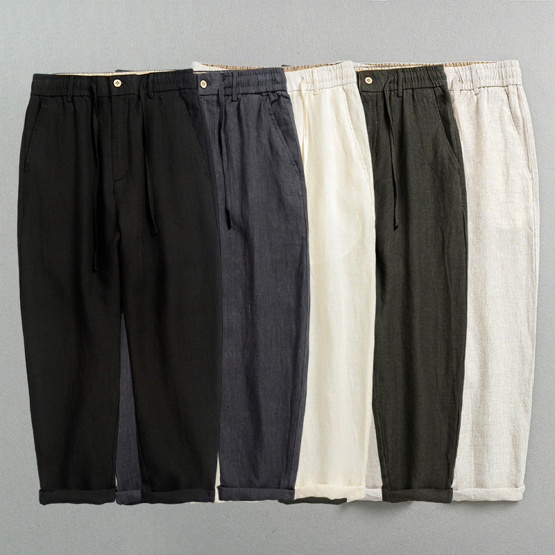 100% Linen Summer Ankle Pants, 4 Colours Men's Elastic Waist Tie Linen Ankle Pants