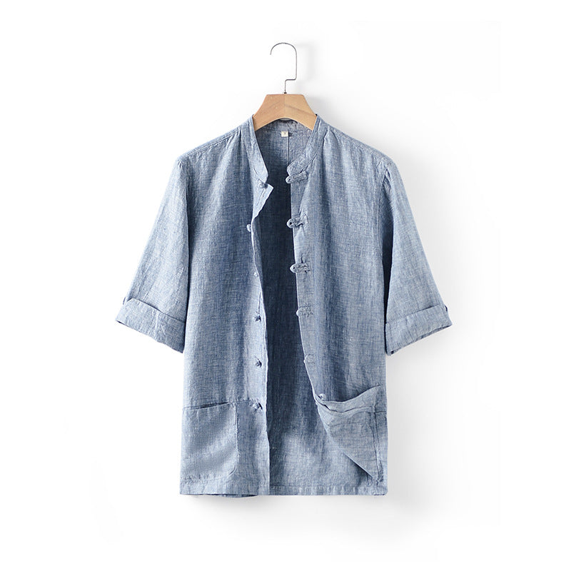 Casual half sleeve linen shirt, vintage men's linen shirt