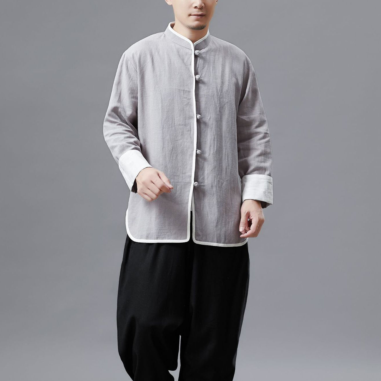 Cotton Linen Standing Collar Casual Jacket, Men's Long Sleeve Kung Fu Jacket, Chinese Vintage Bruce Lee Jacket