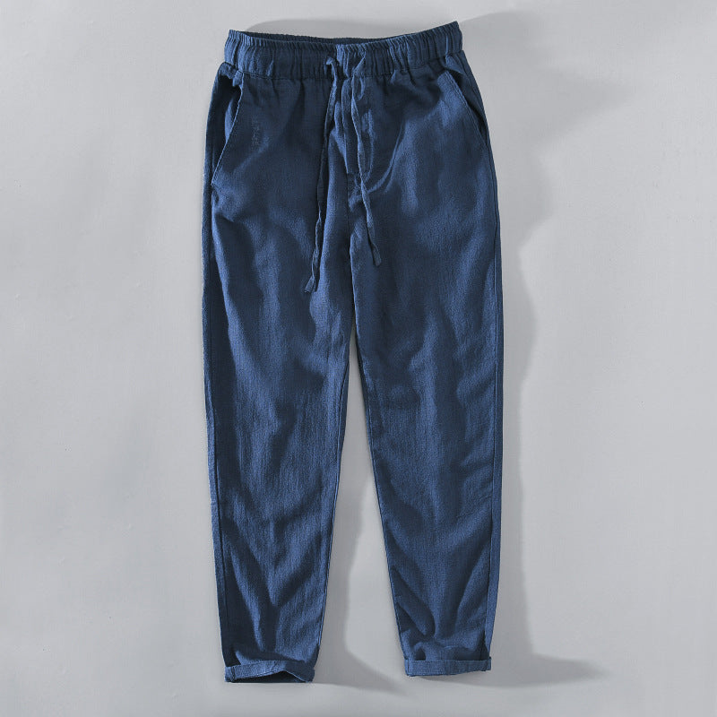 Elastic waist summer pants, cotton linen ankle pants,