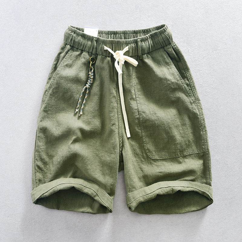 Men's summer cotton linen shorts, elastic waist cotton linen shorts with decoration