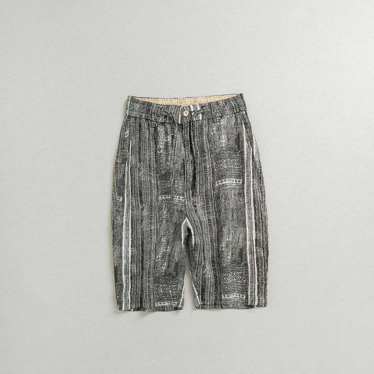 Men's Summer Printed Grey Linen Shorts, 100% Linen Shorts