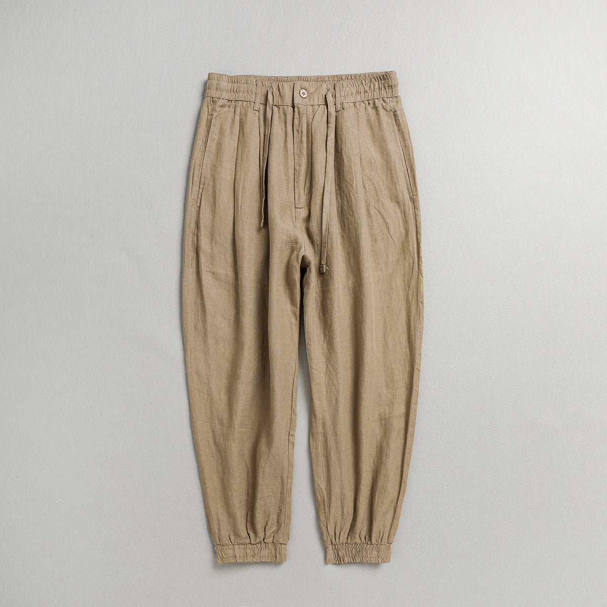 Summer men's 100% linen drawstring pants, vintage elastic waist linen harem pants
