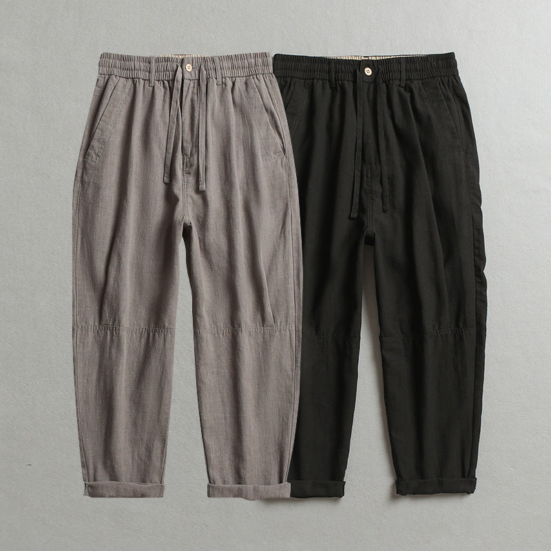 Summer men's loose linen ankle pants, casual elastic waist linen pants